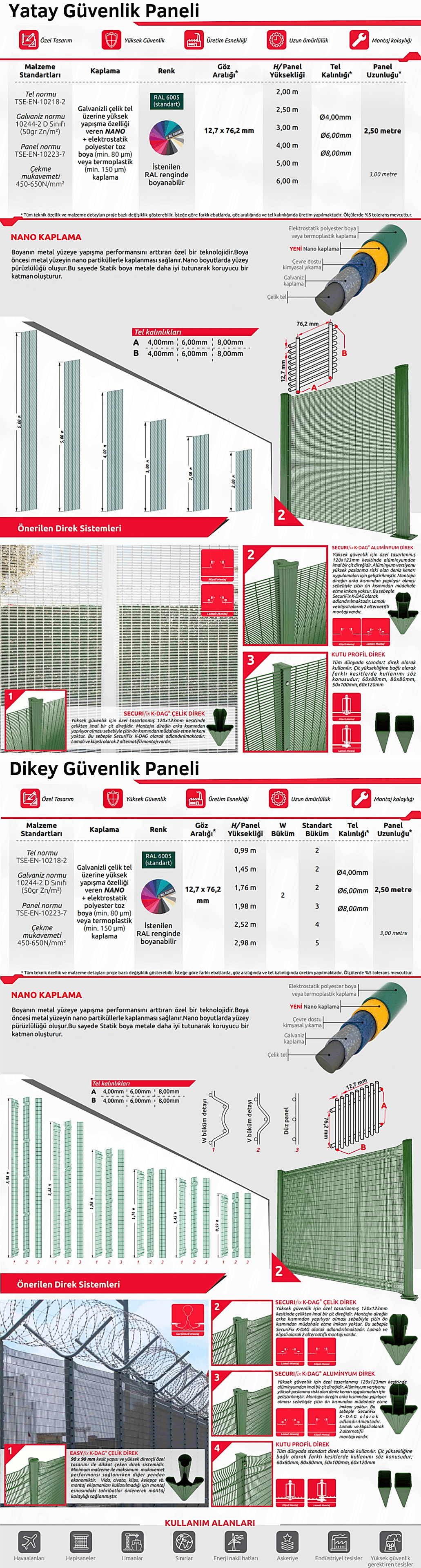 - Özelleştirilebilir Yapılandırmalar: Çeşitli yüksekliklerde, panel boyutlarında ve kaplamalarda mevcut olan Güvenlik Paneli sistemi, çeşitli ortamlar için esnek bir çözüm sağ ayarak belirli güvenlik gereksinimlerine uyacak şekilde özelleştirilebilir.